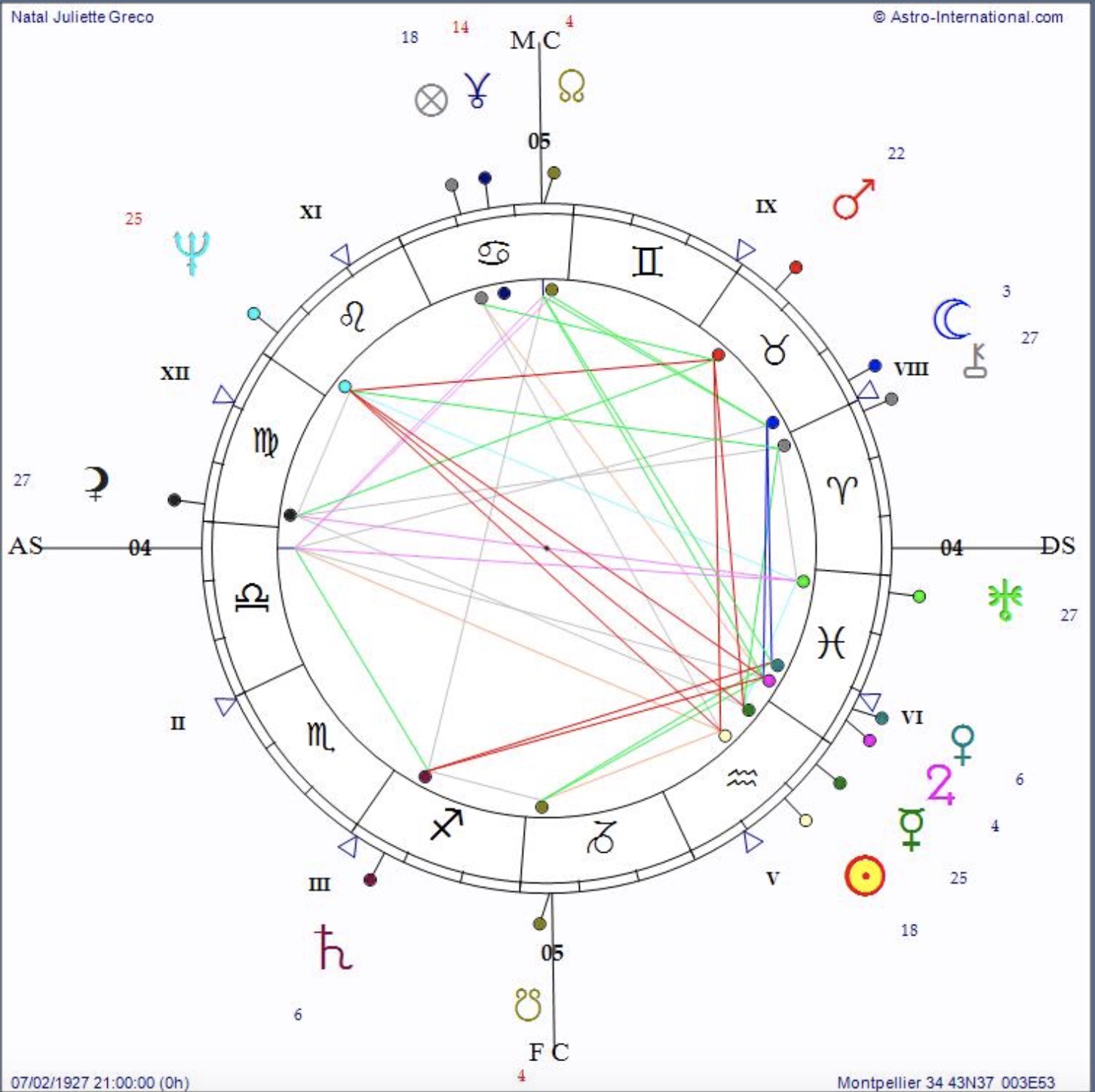 Ce qui va bien avec les signes du Cancer, du Lion, de la Vierge et de la Balance qui sont mis en avant dans son thème occidental.