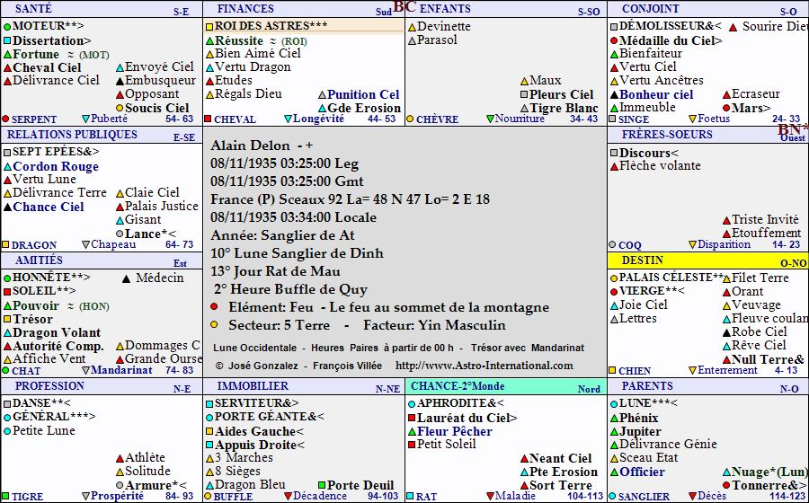 (Sarkozy a la même Lune en Bélier (en Maison VII aussi !), mais chez lui, elle est CONJOINTE Mars. Particulièrement impulsive, c’est à elle qu’il doit des remarques incontrôlées type « Casse toi pôv’ con ! ». Chez Alain Delon, Mars est dans le signe plus contrôlé du Capricorne, qui lui donne plus de self contrôle, un certain sang froid).