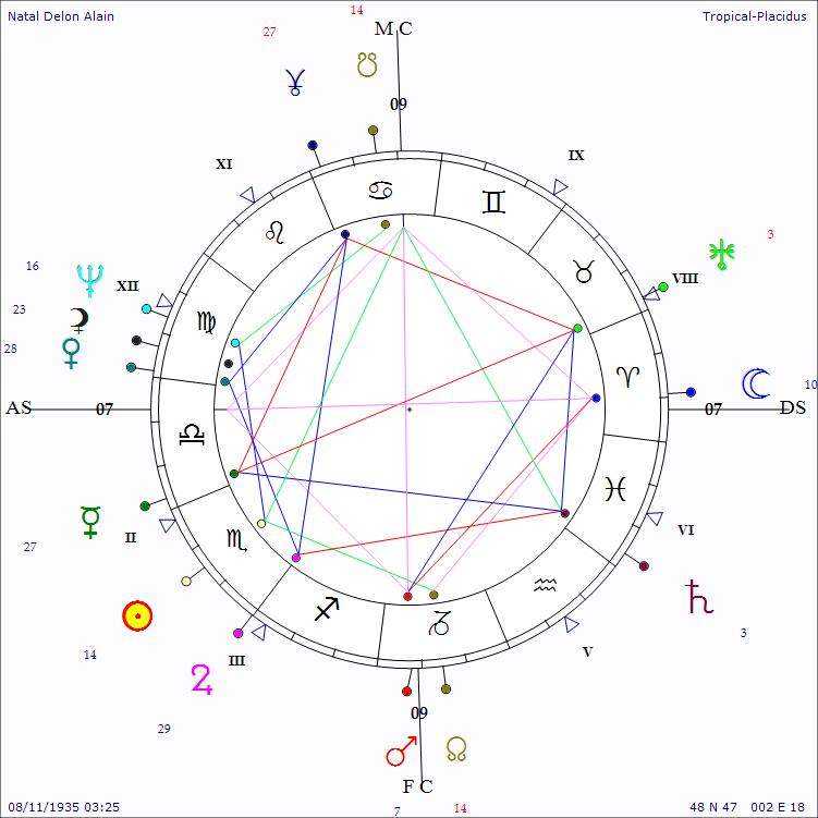 Ce sera d’ailleurs un parfait résumé de la Balance et du Scorpion, puisque j’ai choisi de vous présenter le thème de M. Alain Delon, Scorpion AS Balance.