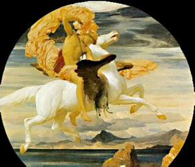 Persée chevauchant Pégase, Frederic Leighton (ca. 1850). Remarquer la tête de Méduse que tient Persée.