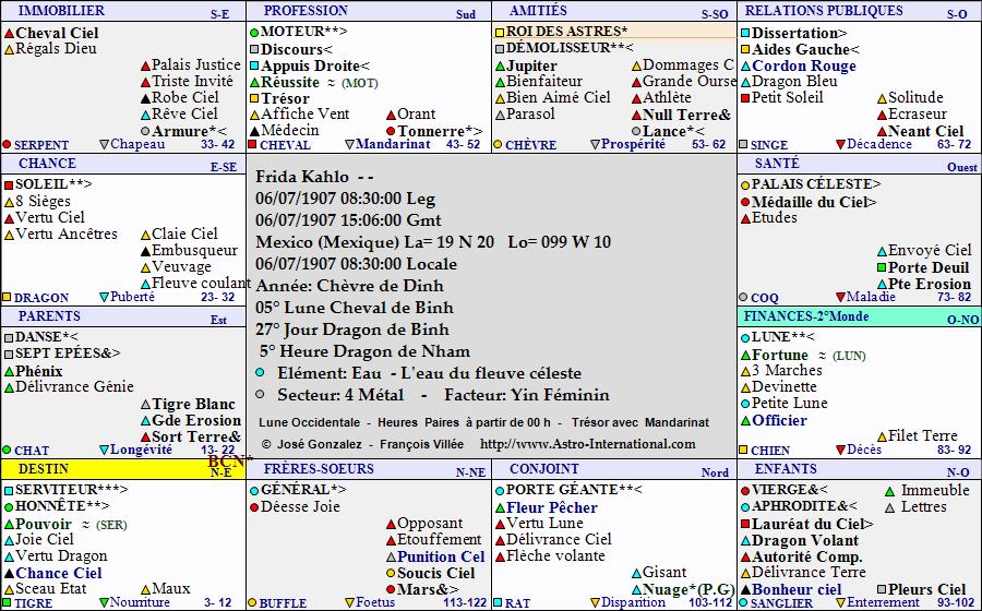 – Le Destin, en case du Tigre, appartient au Groupe Civil Littéraire, celui des écrivains, artistes, psychologues, historiens… Ici, le talent artistique apparaît clairement avec la présence du trigone Fleur de Pêcher – Cordon Rouge (les 2 Vénus chinoises) en face du Destin.