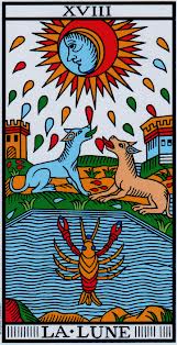 Dans le Tarot, la Lune symbolise le mirage, l’illusion, les rêves, l’archétype féminin, mais aussi les déplacements…