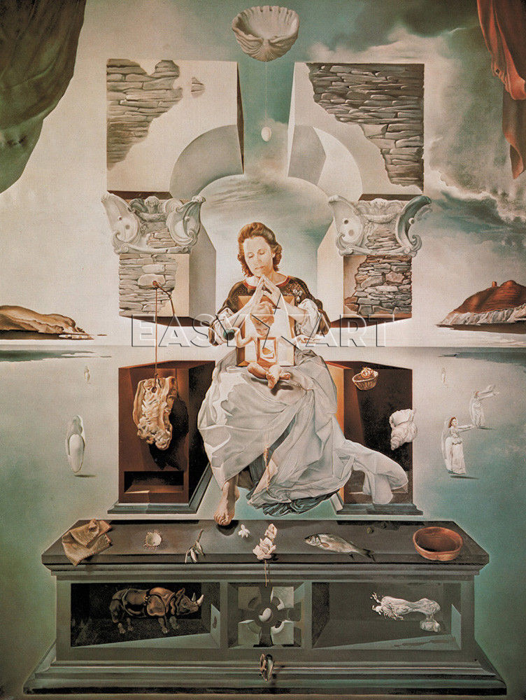 La toile représente une Vierge à l’enfant ou Madonne avec le visage de Gala, la femme du peintre. La Vierge possède une ouverture rectangulaire dans son tronc dans lequel on peut voir l’enfant Jésus, qui a également une ouverture dans le thorax, dans laquelle on peut alors voir un morceau de pain. Dali le décrit comme « un tabernacle dans le corps de Jésus qui contient le pain sacré ».