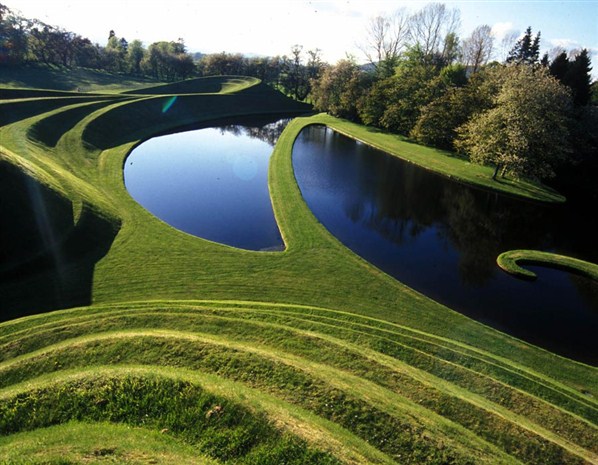 - L’architecte Charles Jenck a agencé ce magnifique jardin selon les lois mathématiques et scientifiques. Tout un univers Verseau!